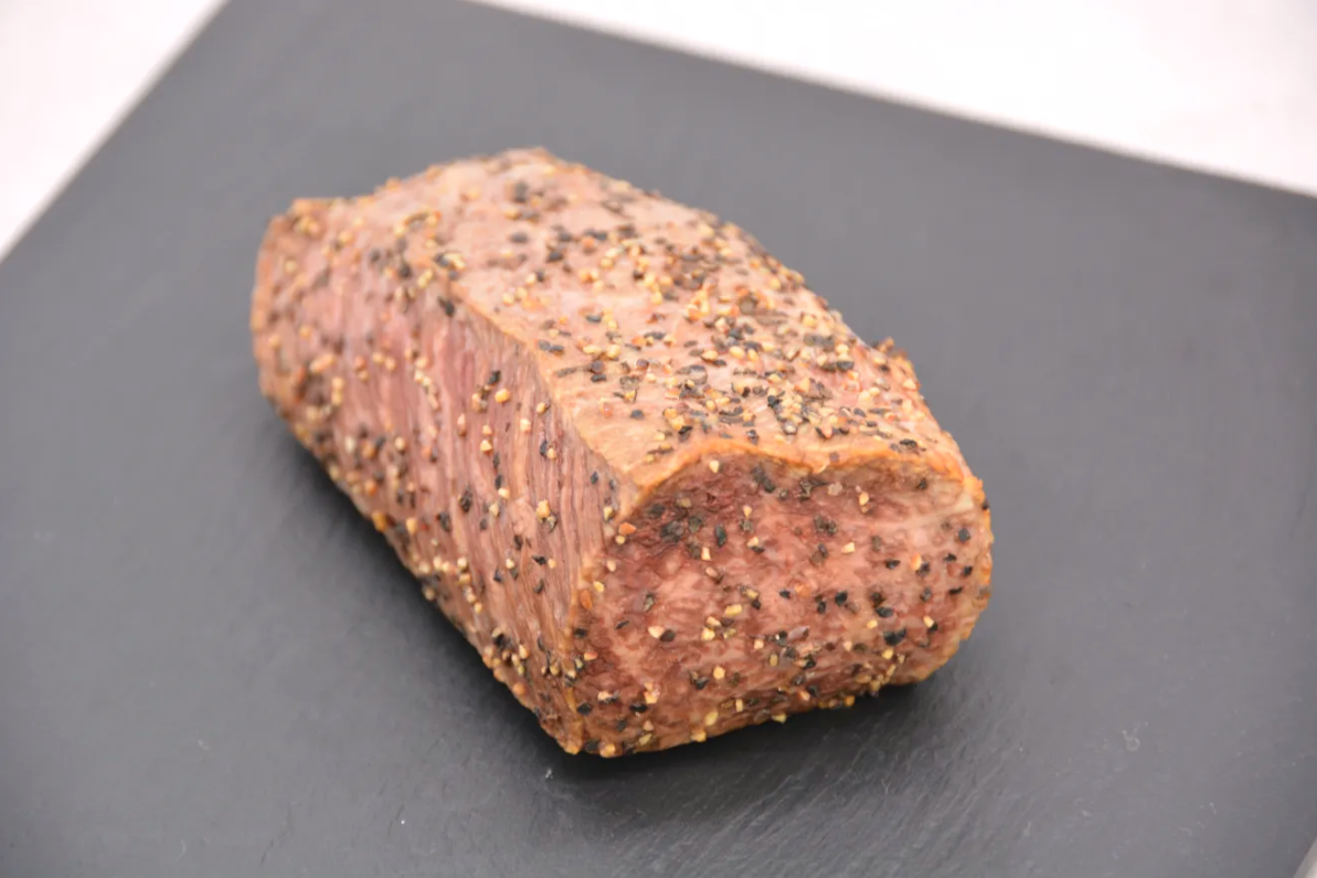 特に旨みが濃く、きめ細かな赤身部位を、熟練の職人が丁寧に火入れしたローストビーフ。