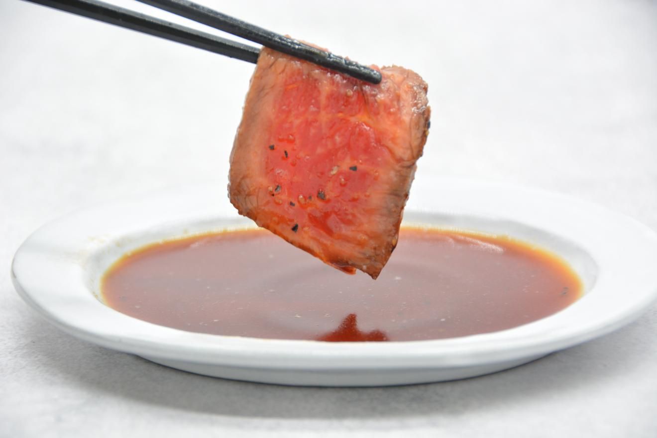 独自開発した専用ソースは、石原牛の繊細な旨みを邪魔することなく、さらに奥行きのある味わいに。