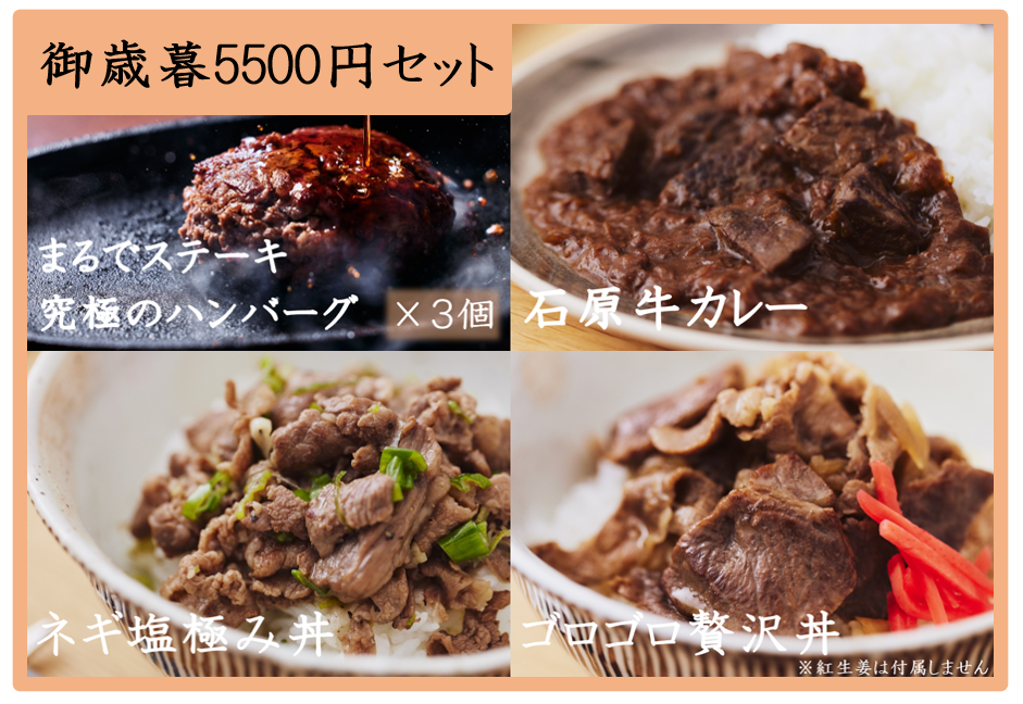 最高級A5ランクの石原牛を贅沢に使用した、調理済み商品の3点セットに、